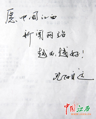 尔后,在记者的请求下,欧阳自远欣然为中国江西新闻网题字,写下“愿中国江西新闻网站越办越好!欧阳自远”。