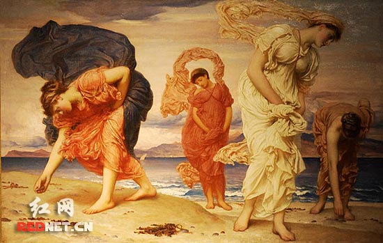 (海边捡拾鹅卵石的希腊女孩(拉斐尔前派油画)作者:弗雷德里克•莱顿)