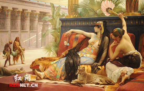(克娄巴特拉用死囚尝毒(法国学院派油画)作者:亚历山大•卡巴内尔)
