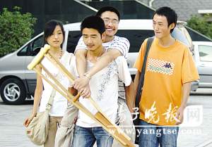 采访快结束时,军训场上响起“中场休息”的哨声。孟凡旺提出想去看看同学们。从宿舍到军训场,大约10分钟的路程。本报记者裴睿执意背一回孟凡旺,扮演一次弟弟的角色。到军训场地时,比孟凡明高大许多的裴睿满头大汗。“太不容易了,我才背了10分钟,孟凡明已经坚持了这么久了。”弟弟孟凡明说,他现在只想赚钱帮助哥哥上完大学,只要哥哥需要,他会一直当哥哥的双腿。而哥哥孟凡旺悄悄告诉记者,他也有个心愿,想让弟弟上学。他说,他现在唯一的念头就是读书,将来找到工作让弟弟重回课堂。