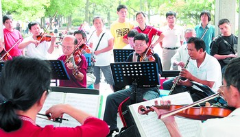 昨日,湘江风光带天心区段,市民在吹拉弹唱,好不惬意。在文明创建中,天心区秉承“让市民在创建中受益”的理念,努力为市民打造文明和谐的生活环境。贺文兵 摄
