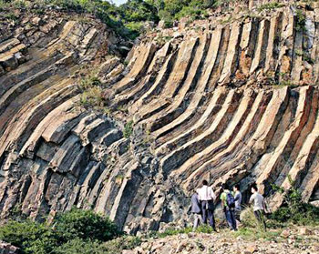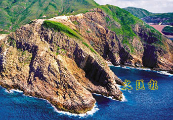 香港西贡粮船湾海岸(花山附近)的六角形岩柱,高约100米。(图片来源:文汇报)