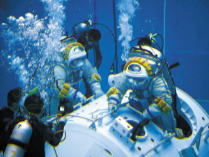 周旭东告诉记者,按照计划,一位航天员留守在返回舱,进行指挥;而另外两位航天员会爬到气闸舱,气闸舱的环境类似地面,有足够的空气。因为一位航天员要出舱,一旦气闸舱打开,舱内就会变成真空的。因此,两位航天员都得穿上航天服。打开舱门后,其中一位航天员将协助另一位航天员出舱。