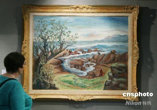九月十八日,香港苏富比拍卖行举行《二十世纪中国艺术拍卖会》新闻界预展,台湾画家陈澄波三十年代作品《猫鼻头(涛声)》估价一千八百万至二千五百万港元。中新社发 武仲林 摄