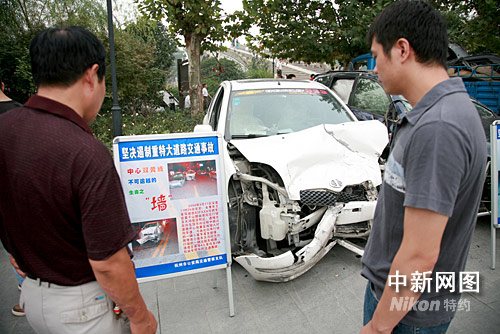 中新网杭州9月21日(见习记者袁爽 通讯员庄琪 张谆 马进)9月21日上午,在杭州拱宸桥东侧运河文化广场,3辆已经面目全非的机动车被过往的市民围得严严实实,交通事故触目惊心的图片和活生生的“教材”产生了巨大的震撼力。 上午9 时,“坚决遏制重特大道路交通事故百日安全竞赛”在杭州运河西广场举行宣传启动仪式。