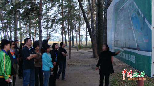 导游为“第二届网络媒体龙江行”采访团介绍唐代渤海国遗址 (江西网记者 叶安勇 摄)