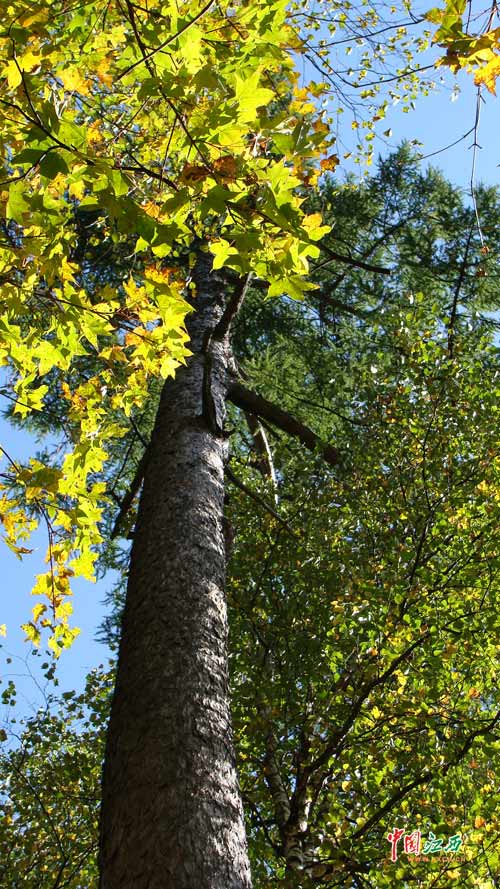 这棵树叫红松,高35米,树龄有400年 (江西网记者 叶安勇 摄)