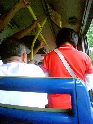 925路从人民广场发车时,司机便正在和一名乘坐在前门第一个位子的乘客对话。乘客手中拿了一瓶冰镇可乐,似乎与司机相识,谈话时做出各种手势。