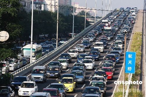 9月22日早8时15分,北京航天桥上下车流拥堵。当日,是北京单双号限行措施解禁首个工作日,北京市各条道路恢复至平时早高峰交通流量。此外,因诸多原因,北京市将面临更大交通压力,交管部门推出九大措施应对奥运后交通。中新社发 郑雄增 摄