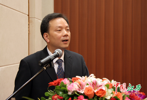 江西省信息产业厅副厅长李江河博士在会上会作江西省LED产业情况介绍。(江西网记者 何淳勇 摄)
