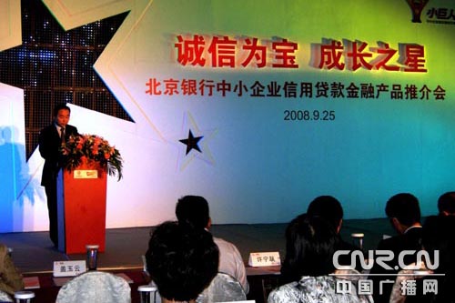 中广网北京9月25日消息(记者黎政祥 实习记者武新星 通讯员韩斌)9月25日,北京银行在香格里拉大酒店隆重举行以“诚信为宝,成长之星”为主题的“融信宝”中小企业信用贷款金融产品推介会。这是继7月29日“贷动文化,创意无限”文化创意金融产品推介会后,该行针对中关村科技园区科技型中小企业举办的又一次专项产品推介活动,近150名北京知名科技企业代表参加了此次推介会。