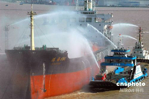 9月27日,江苏镇江市在长江镇江段润扬大桥上游水域举行“长江一号”防污综合演习,一艘运载化学品船上的大火正被迅速扑灭。此次防污综合演习,是为提高应对水上突发事件的能力,保护水域环境和饮用水的安全。长江不仅是航运通道,更是饮用水源,随着镇江经济的快速持续发展,到港船舶数量和港口货物吞吐量正以每年15%的速度递增,危险化学品也在逐年增长。目前镇江水域日过境危险化学品船达300多艘次,船舶安全和防止水域污染形势越来越严峻。据悉,这是建国以来镇江首次举行水上防污综合演习,也是长江历史上规模最大的地市级水上演习。中新社发 陈岗 摄