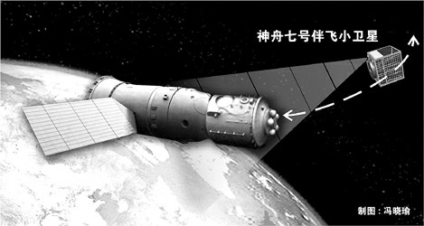 据北京航天飞控中心飞管室主任刘俊泽介绍,伴飞小卫星安装在神舟七号飞船轨道舱前端,重约40公斤,具备光学成像、全球卫星定位系统导航(GPS)、统一S波段测控(USB)等多种功能。9月25日伴飞小卫星与飞船一起发射升空,进入预定轨道。此后,北京中心对卫星的运行状况进行了严密监视和判断,通过发送遥控指令和注入数据,逐步实施了对星上部分设备加电、星上飞行程序设置和伴飞小卫星释放准备程序启动,为释放卫星做好了准备。