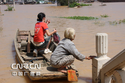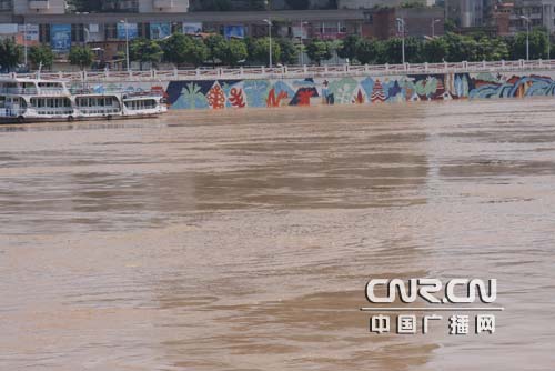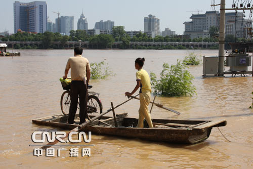 记者在南宁市邕江两岸看到,受洪水影响,城区中心地带的河道变得十分开阔,两边不少花草、树木树干已被水淹没,只剩下树冠部分;江面上不时出现竹、树枝、茅草等飘浮物。江面上除巡逻艇外,所有船只都停泊靠岸,船体与防洪大堤几乎外在同一水平线上,有的甚至超过大堤。但住在船上的人家,往来就得依靠小船摆渡完成。