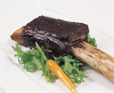 还有一个是照烧带骨小牛排,虽然是小牛排,但个头其实很大。这块牛排是牛身上最好的肋排,说是这么说,但具体哪个位置,我也搞不清楚。所谓真正的照烧,应该是源于日本,新鲜的食材用喷灯高温烤炙,达到外面焦脆,里面嫩而多汁的效果,吃的是食材的原味。观景台的这个小牛排,用不用喷灯,我不知道,但也是外面焦脆,里面多汁,牛肉味道相当不错。小牛排是事先卤过的,口味上比较适合中国人。牛肉很嫩,这种嫩不是加了嫩肉粉之后的嫩,而是牛肉纤维本身的嫩度已经达到最好。入口有焦香味,然后是牛肉的原味,最后是绵长的回甜。