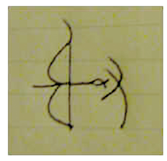 在进入李军阳淇澳射箭场的要道处,可见“射道”二字。记者有些纳闷:他是学日本吗?可日本称射箭文化为弓道啊。李军阳说:“其实,中国古代提到过‘射道’。《礼记》中说:‘弓,矢器也;射,艺也。艺成而下,德成而上。’‘射’在甲骨文中是弓、箭和手的象形组合(如图 ),如果没有人,就只是死物,没有射的概念。‘射’字把器、艺、道合而为一,所以我取‘射道’。”这一年多,有300多人到李军阳的射箭场体验。
