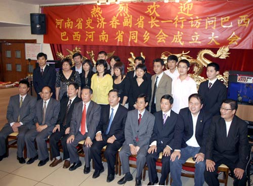 正在此间率团访问的河南省副省长史济春,应邀参加了巴西河南同乡会成立大会。史副省长代表省政府和全省人民向侨胞们表示慰问,并热烈祝贺河南同乡会成立。史副省长致词中还介绍了河南的历史文化及经济发展成就,欢迎侨胞们有机会到河南投资兴业,旅游观光。