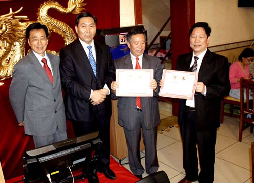 成立大会上,史济春副省长、孙总领事向董洪宣会长、丁荣举监事长颁发了就职证书。