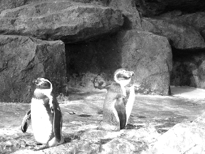 企鹅来自秘鲁,名为洪氏环企鹅,名字来源于流经秘鲁和智利海岸线的亨博尔特冷流。其体长约68厘米,胸部和脸上具有带状斑纹,叫声喧闹似驴叫。