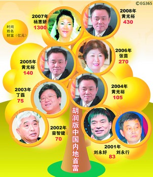随着股市、楼市回归冷静,不过,在家电零售、房地产、投资领域中多元开花的黄光裕却成为富豪榜中排位最为稳定的首富。最近五年里,黄光裕当了三次首富。在“胡润百富榜”十年的历史中,除了黄光裕之外,只有荣智健家族曾三次坐上首富宝座。