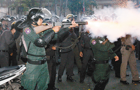 数千名反政府示威者7日在泰国首都曼谷包围国会并与警方发生冲突,至少1人死亡、近200人受伤。总理、国会主席和部分议员被迫翻墙离开国会大院。