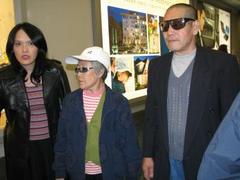 赵巍父母杨宝英(中)、赵子生(右)抵达温哥华,卑诗省议员关慧贞(左)前往接机。(加拿大《世界日报》/范琼文 摄)