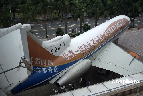 珠海方面称:毛主席的专机,从1986年退役后,一直放置在北京西郊机场,1999年由珠海日东集团购入后,作为收藏品摆放在珠海日东广场。近日,各大媒体报道,该公司表示要将飞机800万元出售。 中新社发 双人鱼 摄