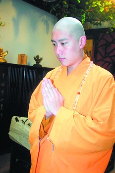 参加完姐姐陈慧琳的婚礼后,香港演员陈司翰日前在杭州灵顺寺剃度,疑为新剧《西游记》做造型。CFP供图
