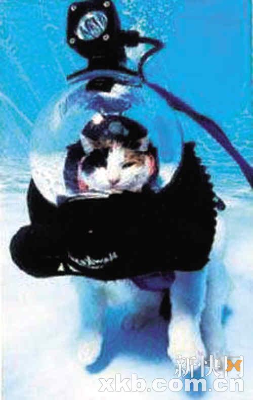 新快报讯据英国《星期日镜报》12日报道,美国旧金山市附近男子吉恩·艾尔巴是一名潜水爱好者,为了让自己家的宠物狗穆特雷、宠物猫霍凯尔也能够和他一起在海底潜水遨游,艾尔巴苦心研究,发明出了一种神奇的“动物潜水服”,穿上这种神奇潜水服后,向来都是陆地动物的猫和狗现在也能潜入水底,充分享受海底探险的乐趣了。据艾尔巴称,有了这种动物潜水服,连生性怕水的猫咪都爱上了潜水运动。现在他家的猫狗都成了“潜水迷”,一看到潜水服就激动。 (宗禾)