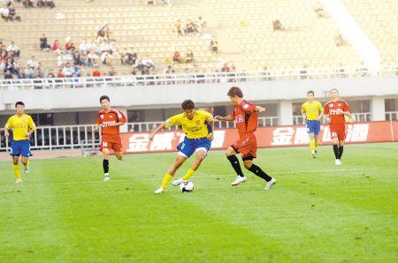 上半场比赛的前20分钟,辽宁队的确展现出了极强的攻击欲望,在场面上也占据了主动。早有准备的浐灞球员顶住了对手的“三板斧”,虽然夏伊德和曹欢的缺阵令浐灞不得不排出一条由李彦、忻峰、赵作峻和郑涛组成的全新后防线,可他们却没有给对手太多可乘之机,再加上门将吴彦晟的两次精彩扑救,辽足众将只能无功而返。随后,浐灞逐渐夺回了主动权,第32分钟,助攻上前的老将忻峰抓住机会打破了场上僵局,这也是他本赛季的第三粒进球。第41分钟,机敏的王鹏又利用对方的传球失误再进一球。两球在握的浐灞队下半场踢得更为轻松,小将朱家伟第66分钟的中超“处子进球”可以说是浐灞经典传切配合的产物,至此,辽足已无力回天,而替补出场的姜晨还错失了两次为浐灞扩大比分的机会。
