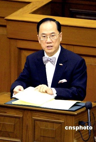 十月十五日,香港行政长官曾荫权,向立法会发表二零零八至零九年施政报告。中新社发 张勤 摄