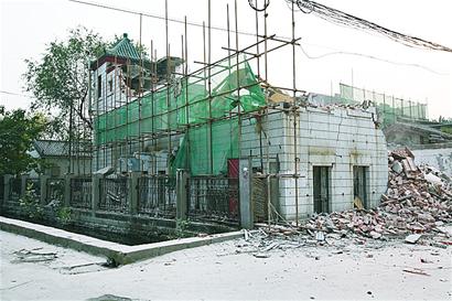 13日,记者接到济南市考古研究所副所长李铭的电话,被告知位于大明湖路202号的辛铸九故居正在被拆除,记者遂赶往现场,而现场工作人员则告诉记者,他们只是想把这个房子装修一下。但是昨天下午,记者再次来到现场,却发现这幢建筑的主体部分已经被拆除了近三分之二。