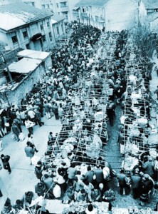 市场开放后,大街小巷挤满了,周边的农民也都进城来了,摊位一直摆到了县委大院的门口,有上千种产品在市场销售。