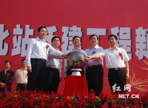 筹备多时的迁建工程今天正式开工,湖南省委副书记、省长周强,铁道部副部长陆东福,省委常委、副省长徐宪平,省委常委、长沙市委书记陈润儿,以及广铁路集团董事长何玉华出席开工仪式。