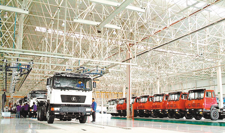 图为泾河工业园陕汽重卡生产线。(资料图片)
