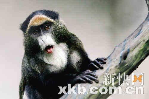 ■非洲的白鼻长尾猴能用"句子"表达不同的意思。这是科学家们第一次发现除人类之外会用句子式的语言交流的动物。 新快报记者 李小萌/摄