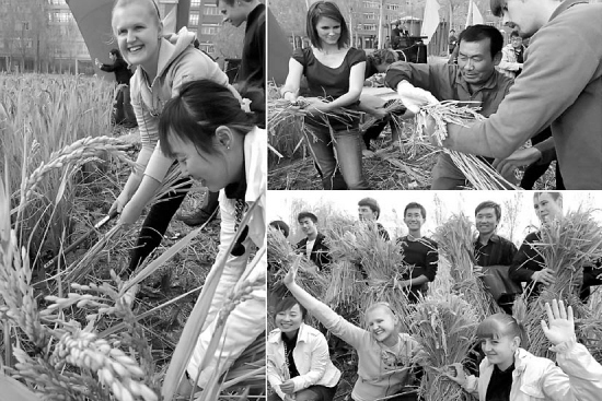 10月15日,沈阳建筑大学举行第六届稻田收割节活动。沈阳建筑大学新校区曾经是千亩稻田耕地,当新校舍在这里拔地而起时,该校保留了一块20亩的稻田地,将稻田做成景观,每年举办播种和收割仪式,让学子们从中感受辛苦、收获和成功。记者 杨新跃摄