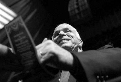 麦凯恩说,尽管自己现在选情落后,但现场有些民主党人心里说不定支持他。这时他跟听众中的希拉里打起了招呼,“很高兴今晚看到你,希拉里”。希拉里在民主党总统预选中败给了奥巴马。不少希拉里铁杆支持者伤心之下宣称要支持麦凯恩。
