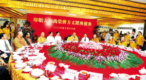 【本报讯】(记者 李兴华 通讯员 还光荣)昨日,深圳弘法寺钟鼓齐鸣,彩旗飘扬,印顺法师任弘法寺第二代方丈升座法会及庆典大会在深圳弘法寺隆重举行。在升座仪式上,弘法寺第一代方丈、今年102岁的本焕长老将印顺法师领到法堂,并亲手将方丈衣钵等法器传授给印顺法师。