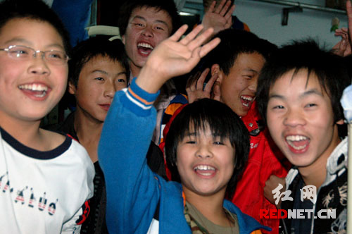 (初二(2)班男生宿舍,孩子们热情道别记者。)