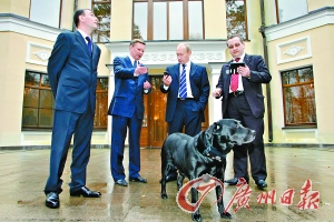 10月17日,在俄罗斯首都莫斯科,俄总理普京的爱犬“科尼”被佩戴上装有全球卫星定位装置的项圈。这种专为宠物设计的项圈重170克,装有卫星定位模块,能接收和传送“格洛纳斯”卫星定位系统的信号,宠物主人能够通过电脑程序实时确定宠物位置。