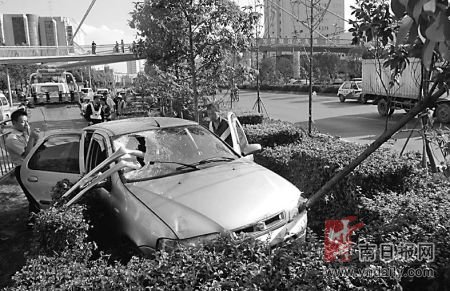 轿车躲摩托失控冲进绿化带妈妈为保护4个月的宝宝受伤