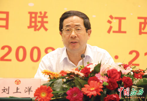 省委常委、省委宣传部部长刘上洋出席表彰大会并讲话。(江西网记者 刘建明 摄)