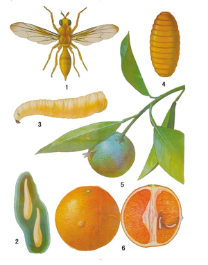 俗称柑蛆,又名柑橘大实蝇,柑桔大果蝇。被害果称蛆果、蛆柑,是国际国内植物检疫性有害生物。
