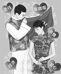 目前的婚姻关系究竟靠什么来维系?调查问卷中同时可选2个答案,结果是,75.5%选择“爱情、亲情、感情”;58.7%选择“责任、良心”;30.9%选择“为子女”。而提到因“经济”“社会舆论”或“让父母放心、父母反对我们离婚”勉强维持婚姻的占12.3%。