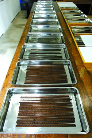 清华大学副校长谢维和介绍,这批珍贵竹简是今年7月由校友捐赠、自境外抢救入藏的。清华大学出土文献研究与保护中心主任李学勤表示,初步统计竹简数量约为2100枚(包括残片)。这批竹简形制多种多样,简的长度最长的有46厘米(战国时的2尺),最短的不到10厘米,较长的简都是三道编绳。记者在清华大学特别陈列室里看到,已现黑色的竹简上文字多书写精整,多数仍很清晰。