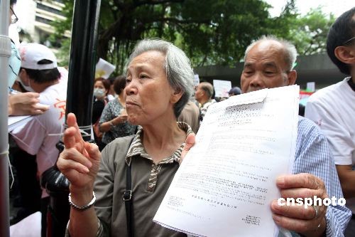 资料图:过百名受雷曼迷你债券事件影响的香港市民,在香港立法会前请愿。中新社发 武仲林 摄