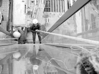 我和张桥都是老“蜘蛛人”了,吊板十余年,我们都是 “无证上岗”。“能不能给我们办高空作业证?”我们每到一家保洁公司,都这样问老板。这么多年,还没听说过谁能给办。岗位培训?我们得到的回答就是——一回生二回熟!