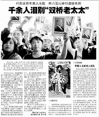 10月19日上午,千人自发送别享年105岁的“双桥老太太”罗有明。罗老悬壶济世救治病人无数,而弟子也不少,参加当天追悼会的,有一个特殊的人就是因 “饶赵案”而闻名的饶颖。就在双桥老太太追悼会后没两天,饶颖突然给记者打来电话,说自己是罗有明的义孙女,在她身边学习过好几年。