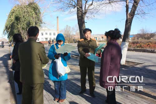 扎兰屯市政府征兵办公室工作人员深入到城乡,走上街头、村头发放征兵宣传单。